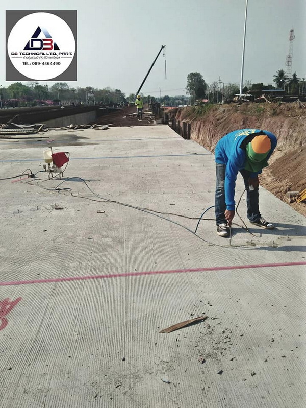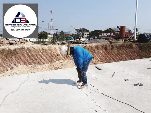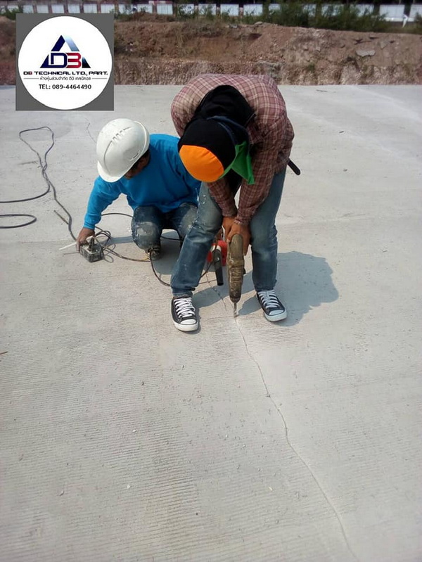 งานซ่อมแซมรอยร้าวพื้นคอนกรีต Epoxy Crack Injection