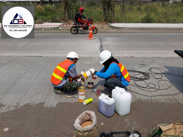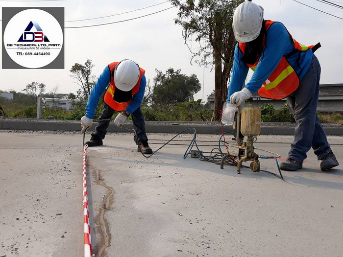 ซ่อมแซมรอยร้าวถนนคอนกรีต Epoxy injection